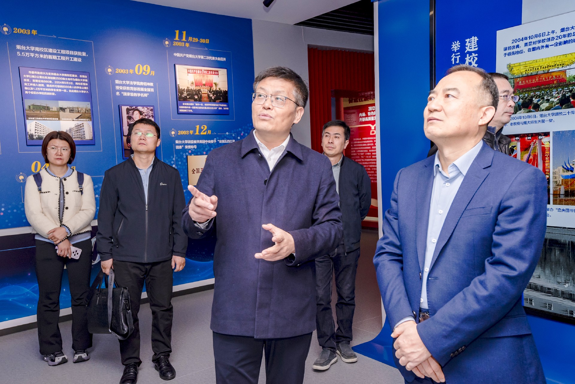 吴茂玉所长一行首先参观了烟台大学校史馆,通过翔实的史料、实物陈列与多媒体展示,全面了解烟台大学在学科建设、科研创新、人才培养、文化传承和对外交流合作等领域取得的显著成就,对学校深厚的办学底蕴和鲜明的发展特色给予高度评价。